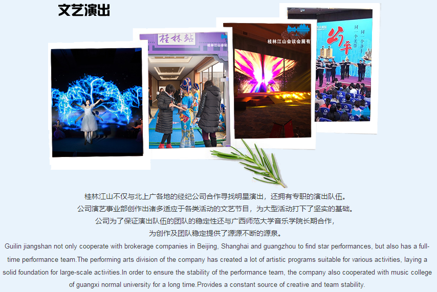 桂林江山會議會展有限責公司是一家專業(yè)的MICE公司;是傳統(tǒng)服務與信息技術相結合的科技型公司。 公司立足于線下活動的豐富經驗,堅持運用信息技術為各類活動(項目)提供更優(yōu)質與便捷的管理與服務。公司開發(fā)的《冬瓜云服務與管理系統(tǒng)》《雙線展覽平臺》《注冊通》《報到通》《多點位全景直播平臺》等應用軟件處于行業(yè)領先地位。桂林江山會議是一個大家庭,于2012年創(chuàng)立,經過長期的經營,吸納與培訓了大批關于會務服務、設計創(chuàng)意、公關演藝、會獎活動、信息技術等項目的眾多專業(yè)人材,涉及展覽工程搭建、慶典活動策劃、影視制作與直播、大型文藝演出、會獎旅游、H5、小程序等軟件的開發(fā)等眾多業(yè)務。江山會議由一支具有超前的營銷理念并...